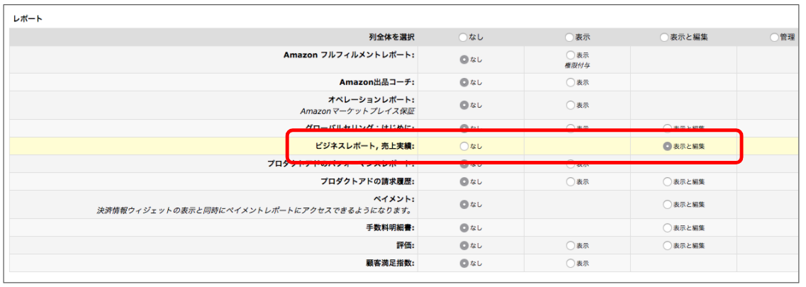 ビジネスレポート以外は権限を付与しないようにして下さい。